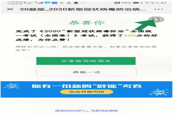 公司紀委書記陳亞軍以《新型冠狀病毒肺炎防控知識手冊》為參考,針對易混淆的、關(guān)鍵的疫情防控知識,進行考試題目設(shè)計,借助微信平臺發(fā)放答題鏈接,呼吁全體黨員干部主動學習防疫知識,積極參與競賽答題。短短半天時間,天谷集團50余名黨員參與答題,95%獲得100分以上的好成績。疫情就是責任,防控就是命令,在這特殊時期,通過此次知識競賽活動的開展,全體黨員干部了解當前的疫情現(xiàn)狀,學習疫情相關(guān)防護知識,起到了引領(lǐng)大家正確認識疫情,防控疫情的作用。